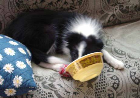 けれどやっぱりまだまだ赤ちゃんなニコル カップ麺の容器と格闘です っつーか、お仕事なのかな |